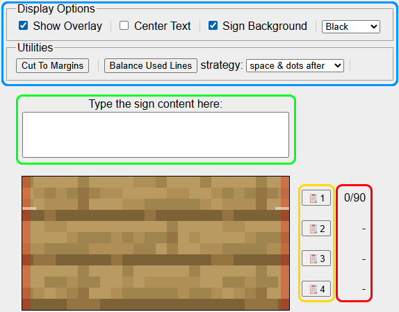 - The buttons next to the canvas let you copy the text line-by-line so you can easily paste it to an in-game sign.